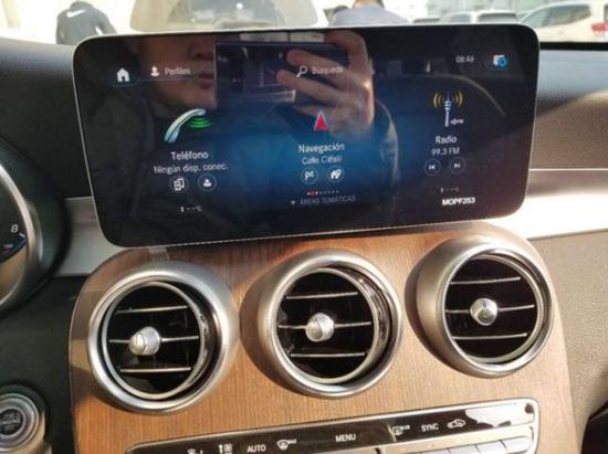 我们再看看他的内部,真皮包裹的多功能方向盘,按键布局清晰,方便了驾驶人员的操纵。下方的仪表盘内容显示清晰,方便驾驶员观察。右侧则是他的大屏刀导航,功能强大,最大程度的提高了驾驶便利,提升了驾驶乐趣。下方是他的圆形的空调出风口,再往下则是奔驰经典的“小鼠标”。