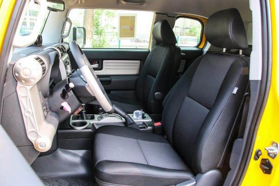 本款丰田FJ酷路泽轮毂采用的是17英寸的铝合金轮毂,轮胎比较厚实,其它配置包括蓝牙连接、6CDJBL音响、带倒影的内部防眩目后视镜、胎压监测、指南针、水平仪、定速巡航、手动空调、Xtreme套件、双油箱、后挂备胎。