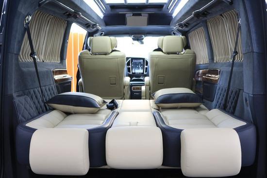 既然选择了豪华改装,内饰就要实打实的用料,进口桃木虎纹扶手,超大液晶控制屏,多功能扶手小冰箱,制冷制热随时调换,附带杯托、储物格。主副驾座椅包覆加厚,让驾驶员也能缓解驾乘疲劳。 威霆后排和中排都改成了航空座椅,乘坐舒适和功能丰富是最大的特点,在很多飞机上也应用该座椅作为商务舱乘坐。