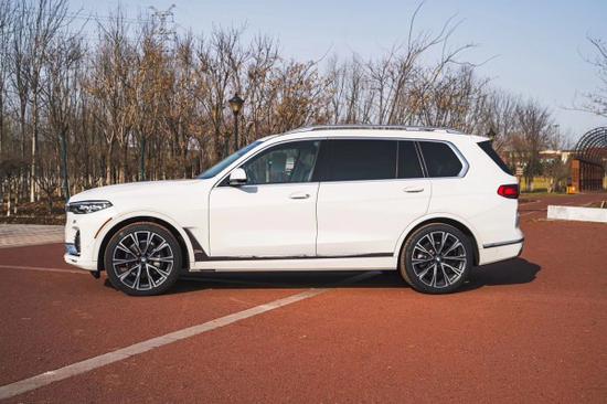 车身尺寸方面基于宝马CLAR平台打造的X7长宽高分别为5151×2000×1805mm,轴距达到3105mm。超长的轴距带来的是更加充裕的空间,给后排乘客提供更舒适的乘坐体验。车身侧面的腰线直接贯穿车身,而且双腰线的设计呈现出整车向前俯冲的视觉效果,让车辆有种蓄势待发的感觉。此外,新车采用了全新的条带式尾灯组设计,使新车更加运动。根据此前信息来看,作为宝马最高端的SUV车型,它尺寸达到了5200、2040、1700mm,而轴距是3000mm,有着硬派SUV般的强大力量感,比保时捷卡宴 (配置|询价)更显档次感。