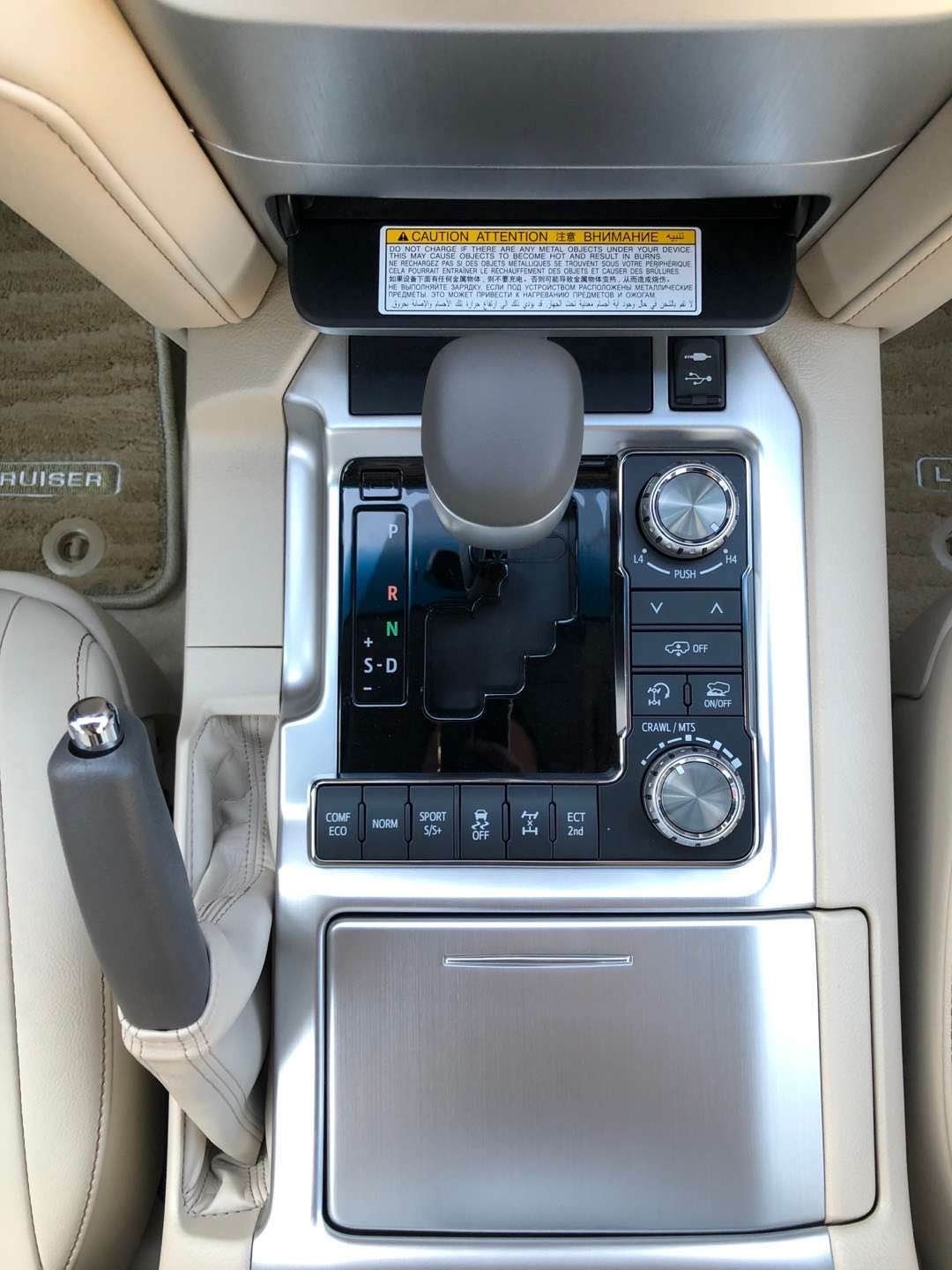 2020款丰田酷路泽5700带有真皮打孔座椅和前座椅通风以及后排娱乐系统,音响系统是JBL,底盘升降控制和差速锁和地形蠕行模式在变速器面板可以控制。中东版兰德酷路泽5700全系带有车载冰箱,这个配置是一般车型所没有的,实用性极强。