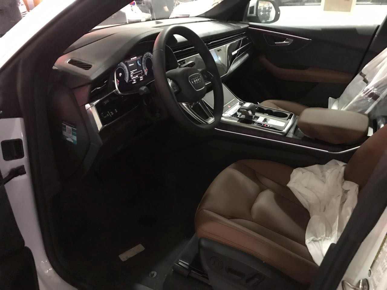 进入车厢内部,会感觉奥迪Q8和全新A8 (配置|询价)的设计高度雷同。奥迪全新家族化设计,科技感十足的虚拟驾驶舱氛围,同样的三块大屏,横向贯穿的前排空调出风口。中控台采用大面积的真皮包覆,且向驾驶员一侧倾斜,形成以驾驶员为中心的驾驶舱。整个中控采用了全触屏来对车辆进行操控,没有一个实体按键,对技术要求极高,非常的高大上。