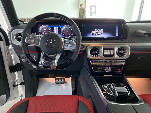 20款全新G63内饰方面,新G63保留了新G500的整体设计,除配色差异外,新车还换装了全新造型的平底式AMG运动方向盘,其两侧配以打孔皮质包裹,下部镀铬装饰的造型也与新G 500明显不同,看上去十分战斗。此外,全液晶仪表盘+中控大屏的双12.3英寸屏幕设计在新车上也没有缺席,营造出了浓郁的科技感。