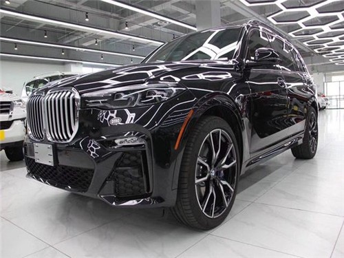 20款宝马X7 (配置|询价)不仅延续了宝马家族式的设计,也添加了不少全新的设计,车头宽大厚重,前脸标志性双肾型进气格栅做了加大处理,直瀑瀑型中网周围包裹宽大的饰条,不仅辨识度高攻击力也是非常强的,两侧连接大灯组,外观做了开眼角处理,上下两条LED日间行驶灯做了上下眼眉,两组大型的远光灯被箭头式造型勾勒,下面的进气口采用大嘴式设计嘴角连接L型雾灯区,有种嘴角上翘的而感觉,远远望去非常有威严。