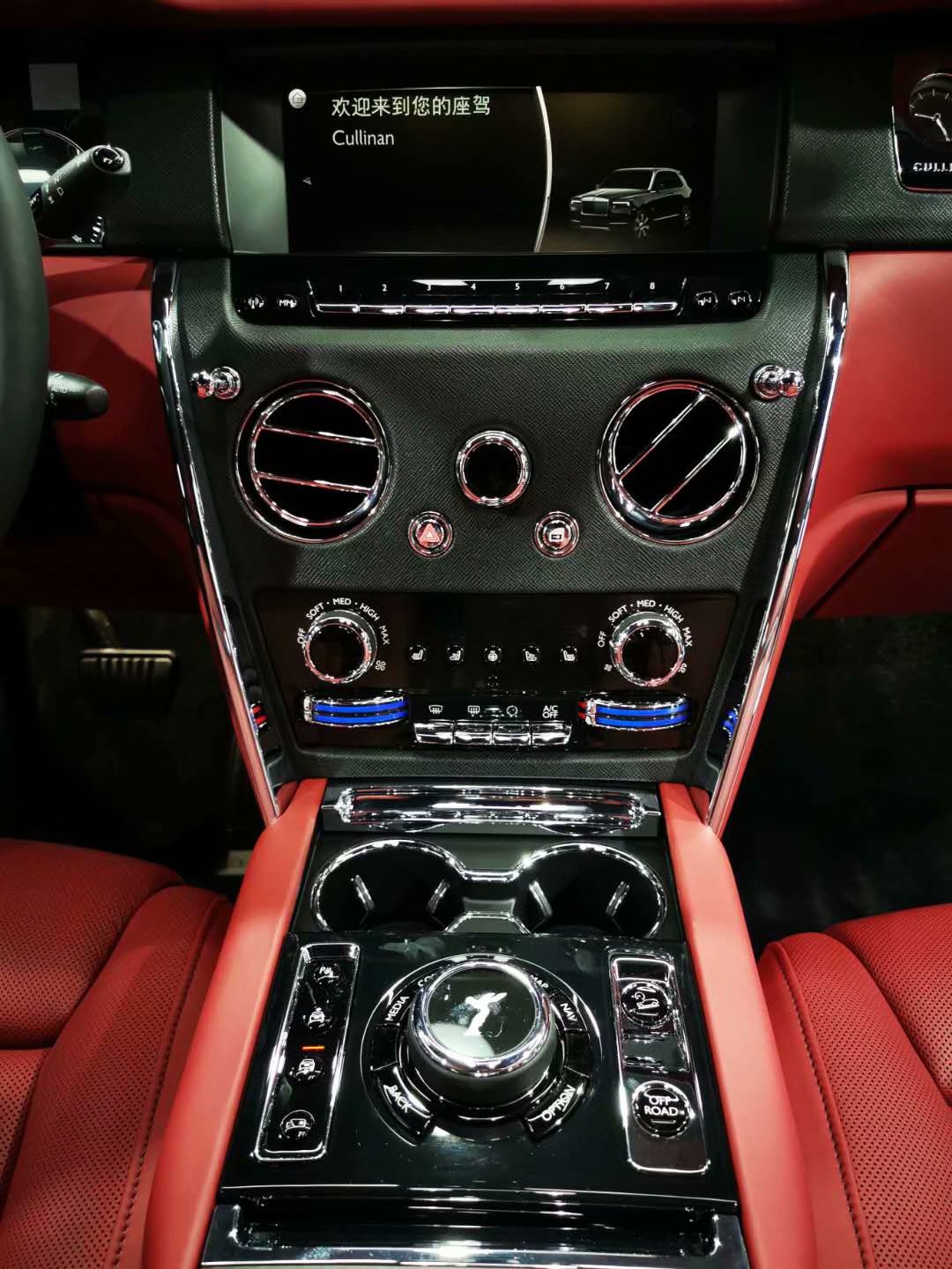 库里南的前排和后排一样的至关重要,我想,车主并不会因享受后排,忽略前排的驾乘感受。座椅设计彰显劳斯莱斯汽车的品质与工艺,简洁而现代的马蹄铁图案,强调座椅的支撑力。整体椅背由一整张皮料精心塑形,打造出极为立体的表面。后排两个独立座椅之间设有后排中央固定扶手,可容纳带有劳斯莱斯威士忌酒具的酒柜、香槟酒具和冷藏箱,为后排乘客带来旅途中的终极享受。
