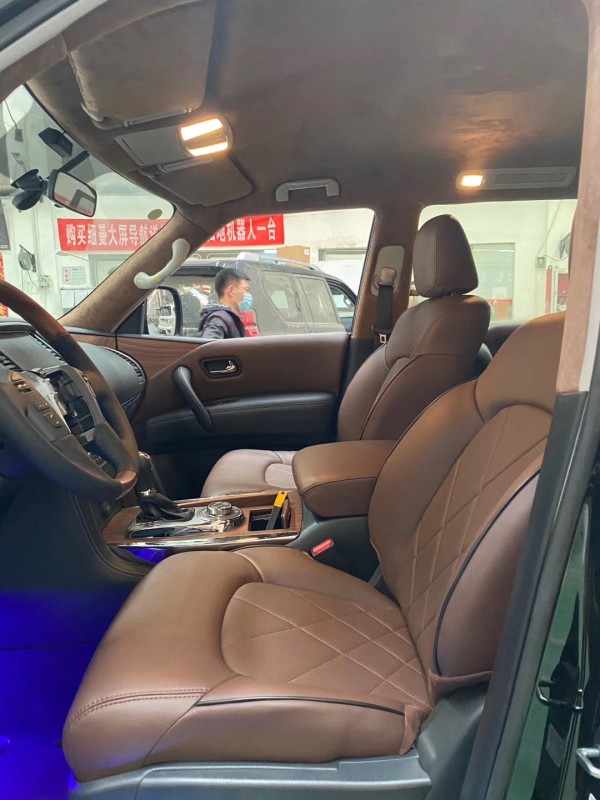 日产尼桑途乐Y62 途乐4.0仍然为三排座车型,内饰整体风格豪华,同时内饰风格任然延续了日产家居化的设计,以浅色调为主,出了轻松惬意的驾驶环境。全部完全遵循了游艇的设计风格,宽敞、舒适、豪华。