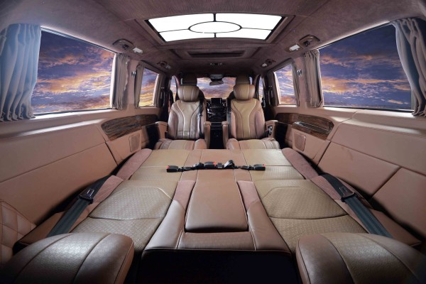 奔驰房车,豪华与舒适兼得,尊享精品座驾;奔驰V260改装商务7座版,完美与尊贵的象征。车顶设计了双景超大电动天窗,白天可大大增加车内的采光,夜晚可以享受梦幻的星空。奔驰V260L可加装桃木件,电视,吧台设计,航空座椅,九宫格的设计也很别致,加了氛围灯,又增加了几分浪漫的色彩,高端游艇木地板设计,既环保,又好打理,整体档次提升了很多无论是开会还是全家出游,做上去都很舒服。