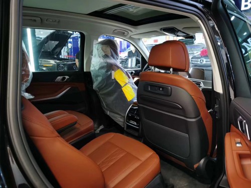 2020款宝马X7 (配置|询价)外观方面,新车极大限度的还原了概念车的设计,双肾式前格栅尺寸相比宝马现有所有车型都要更加巨大,中央的连接处也更显紧密。同时,新车两侧细长的大灯组内部采用了激光式大灯,以及比例更加扁平的家族式LED日行灯。在前保险杠部分,该车采用了巨大的贯穿式U形下部进气口,整体造型极具个性。宝马X7的侧面线条看起来更硬朗,笔直的腰线从前轮轮拱一直延伸至尾灯。侧翼子板处是和7系 (配置|询价)类似的“曲棍球”设计,笔直的腰线从前轮轮拱一直延伸至尾灯,更加突出豪华感。此前概念版配备了隐藏式车门把手并没出现,但整车的侧面依然符合宝马家族式的动感风格。