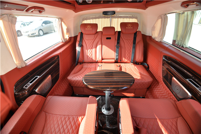 后排座椅采用高端定制的商务座椅,前排座椅后背搭载折叠的小桌板,方便后排乘客处理商务文件或者在车内就餐。专门定制航空头等舱按摩座椅可以全身气筒按摩,舒适感受,更能多项调节,通风加热。疲乏时也可展开腿托,舒适休息。奔驰威霆改装商务车座椅设计得宽大舒适。奔驰威霆改装高顶隔断7座商务车后排排两个独立,并带脚托、座椅记忆,电动升降头枕、座椅通风加热功能,享受堪称“头等舱”级别,设计体贴入微。更多的个人车主或是改装厂家,愿意将奔驰威霆打造成一款更加符合高端定位的豪华商务用车。