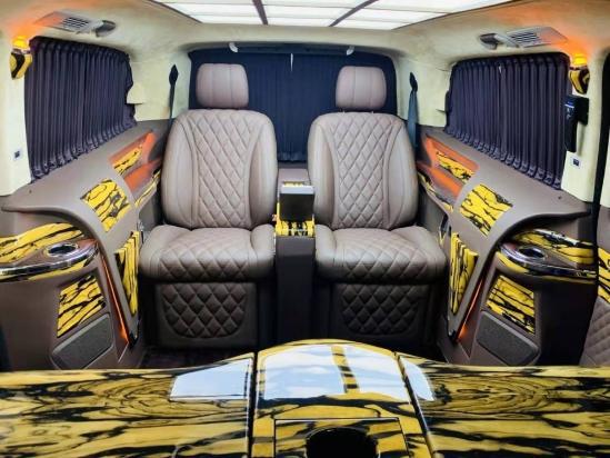 奔驰V260L迈巴赫VS680商务车改装座椅人体工程学设计,带有一键式展开及记忆功能,并配备加热、通风、气动按摩、一键式伸缩腿托功能,带来头等舱级舒适体验巧夺空间,私家客厅级后舱体验,隐藏式空间优化独立座椅,奔驰V级 (配置|询价)V260L商务车二排座椅可在吧台与独立座椅间一键切换,充分释放后舱空间,带来客厅级舒适享受。