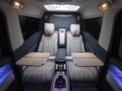 奔驰G580加长版级一直都是喜爱越野的人士所追求的梦想,是诸多明星和网红的座驾,在看看翼子板上的“V8”标识,彰显他发动机不可小觑的实力深色内舱符合越野车的实用原则,作为内饰核心的仪表台整体上也保持了规矩大方的造型风格,与简洁刚毅的外观相统一,既不强悍夸张也不讲究曲线玲珑。但是在用料和工艺上,g级车向来豪华的轿车兄弟靠近了一大步,同时将轿车上几乎所有的车内功能装备武装上身,最新的comman d娱乐系统也搬到了桃木镶嵌的中控台上。可惜中控台依然延续了新一代奔驰车的普遍毛病:各种按钮和控制器繁杂凌乱,竟然不如93年版的g级车来得简洁明了。