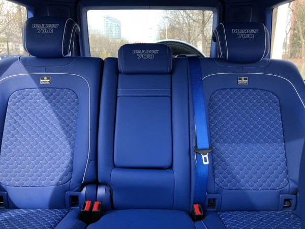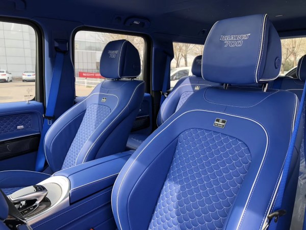 全新巴博斯700 Widestar在G63 (配置|询价)的基础上,增加了诸多巴博斯套件,使得整车设计更加霸气十足,超大超宽的包围设计。外观方面,Widestar以其宽大的轮眉而闻名,它的车身宽度增加了3.9英寸(10厘米)。当使用者打开门时,LED照明会照亮踏板,巴博斯标志也会亮起来。宽阔的前后保险杠融合了大量的黑色网格。车尾的车顶部分安装了扰流板,采用了复杂的三个开口设计。此外,巴博斯还安装了一套23英寸的钛金灰Y形辐条锻造轮毂。