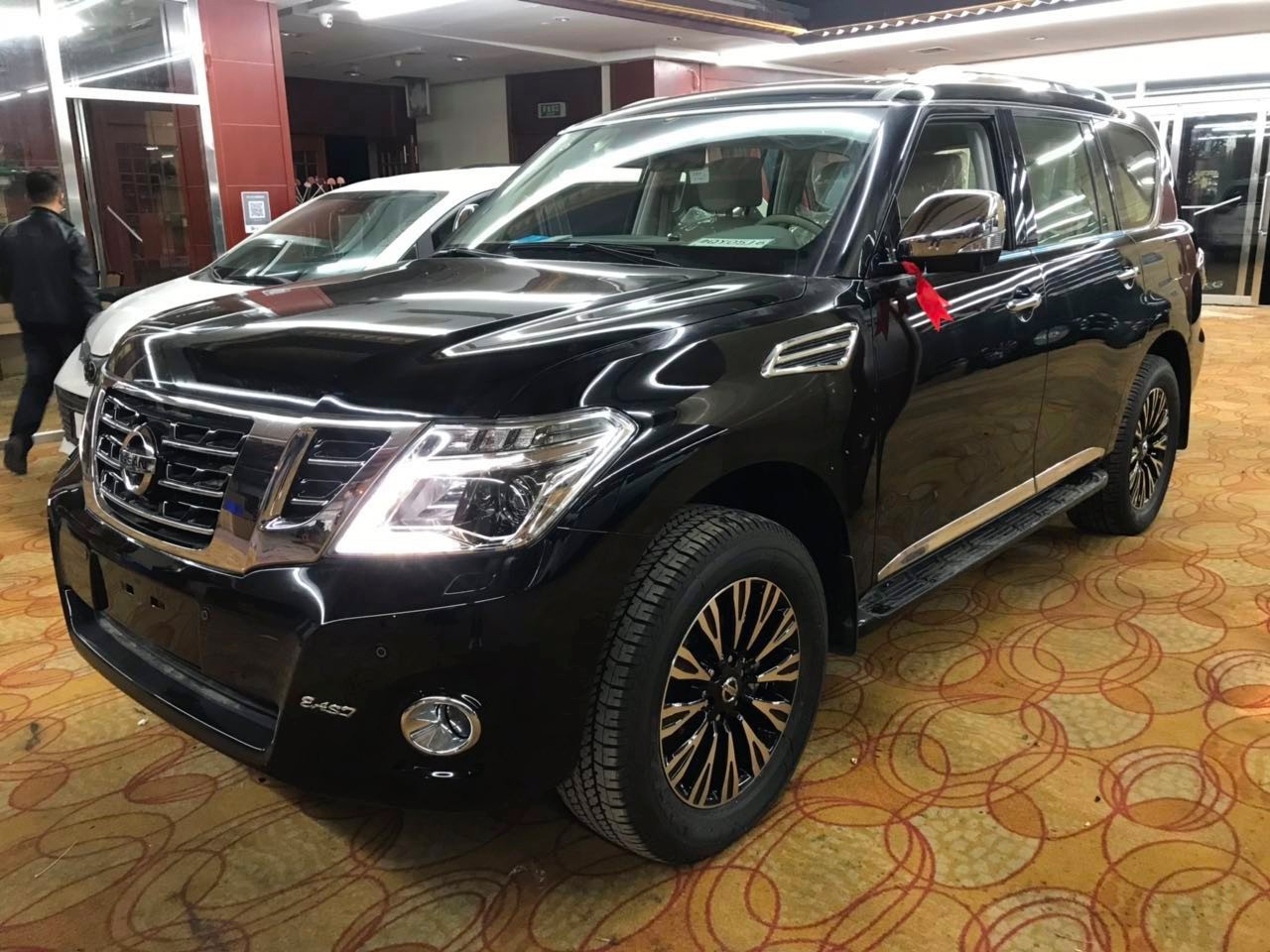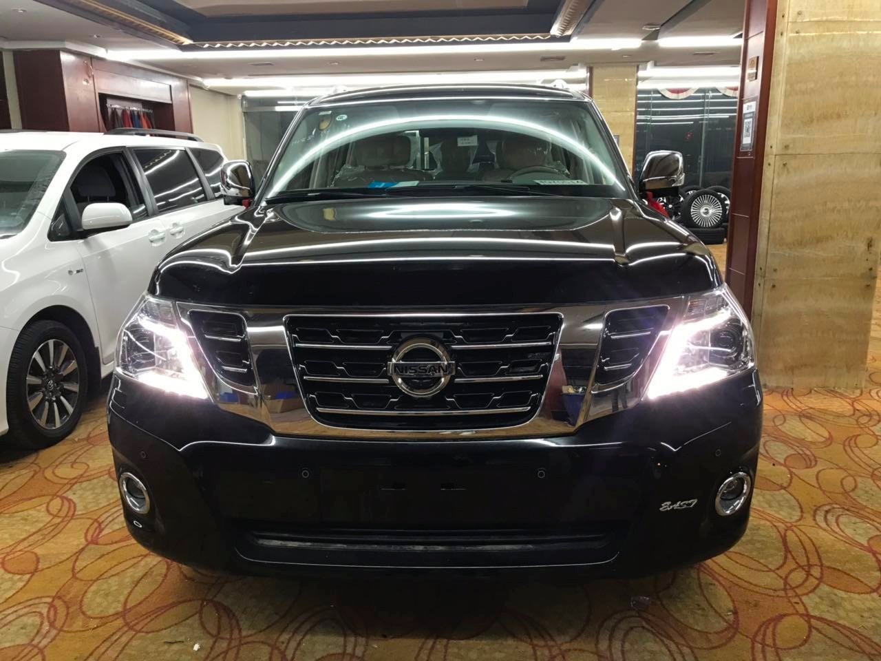 日产尼桑途乐Y62中东版4.0新车像很多SUV一样进行了明显的城市化改造,大大的提高了铺装路面的驾驶舒适性,有着更直接的城市化指向,平滑饱满。日产途乐给人留下的最深刻印象莫过于庞大的车身,车内在保留了这款SUV一贯硬派作风的基础上,在提升豪华性方面也做了很大努力。中东版途乐Y62的外形加入了很多饱满柔 和的元素,霸气的分段式前进气格栅与柔和的线条形成强烈的视觉碰撞感,双幅铝合金轮毂在静态时已经具有足够的“越野范儿”。