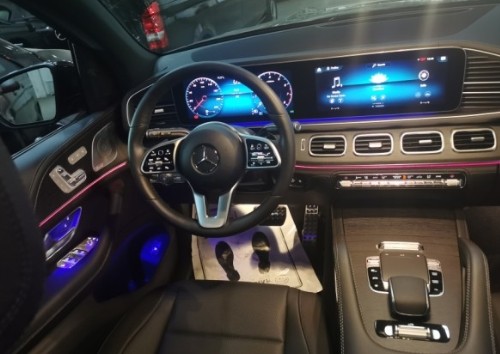 20新款奔驰GLS450的内饰配了实木/皮革组合的多功能方向盘和带有三种颜色及亮度调节的环境氛围照明系统。车内为三排七座设计,所有座椅均由真皮打造。内饰还将有更多个性配色可供车主选择。