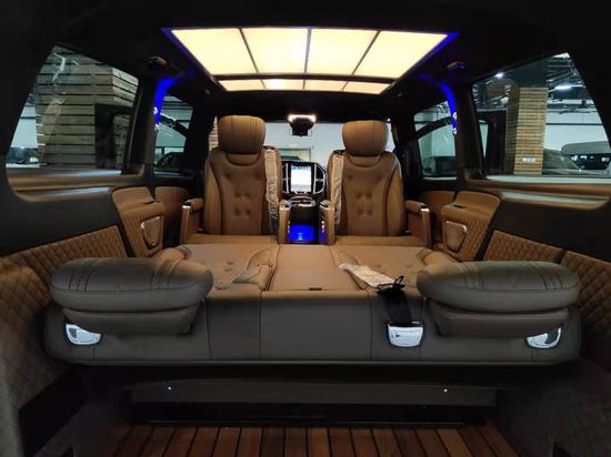 进口威霆改装房车众运版商务房车,内饰带有航空按摩座椅,可为用户的旅行缓解疲劳,更加舒适;自带有可放平沙发床的连排沙发座椅,可以让人在旅途中更放松的小憩。
