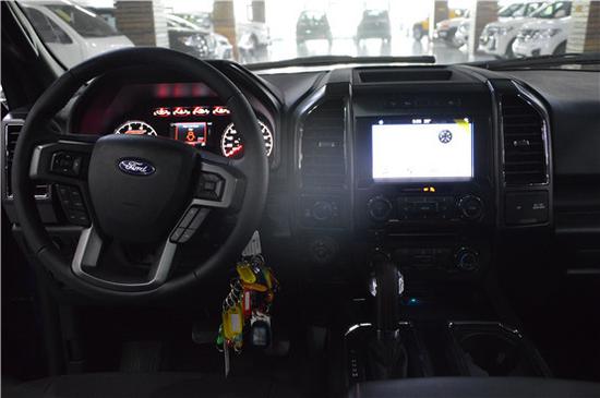 2019款福特F150中央控制区搭配了触控式显示屏,其下方则是多媒体控制区及空调面板,采用旋钮物理按键的组合。中控功能区域可分为三个小控制区,最上端为音响控制及导航控制,中间为收音机调节控制,最低端为空调及座椅加热控制。在内部空间的庞大基础上,福特也提供了非常具有舒适性与服务性的内饰配置。另外,新车还配备了一块大尺寸的全景天窗。