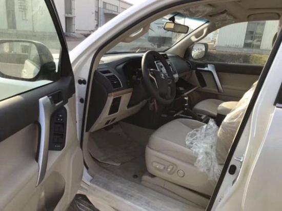 配置:19款霸道2700VX 底挂顶配,白/米,环保公开配置:九气囊,天窗,底挂,桃木内饰,氙灯LED ,自动头灯,大灯清洗,镀铬中网,雾灯,转向边灯,黑脚踏,18轮,胎压监测,冰箱,多功能方向盘,双电动座椅,腰部支撑,电动折叠后视镜,七座丝绒座椅。
