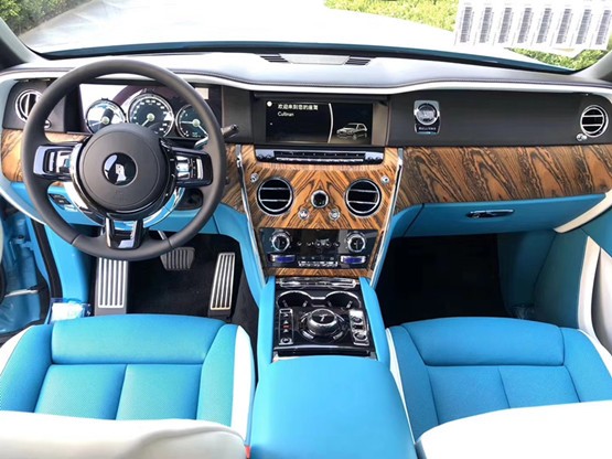 劳斯莱斯库里南三幅式设计的方向盘看上去尺寸不小,足够厚实。中间多功能控制区有实木点缀,以至于开着库里南也有一种生活的仪式感。内饰将、劳斯莱斯的奢华与简洁对称的功能之美融为一体。中控面板的边框由手工打磨的金属条包裹,不仅将上部的仪表板和中部的控制台连接起来,更通过容纳仪表板上的横向设计元素,增加了掌控感。