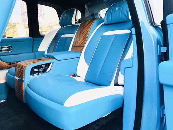 劳斯莱斯库里南沙发一般的座椅采用真皮包裹,配合更加松软的头枕,让劳斯莱斯的奢华体验更加丰满。升高的多功能后排座椅,可轻松接纳3位宾客,从容徜徉于奢华宽敞空间,享受令人惊叹的观景体验。升起后的行李箱底板所形成的整表面搭配电控折叠座椅,便可轻松打造出宽敞的行李空间,灵活自如,一举容纳天下。