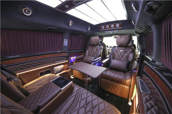 为了最大程度上优化车内空间,保证乘车舒适度,奔驰VS880进行了车顶加高,车顶加高后,整车尺寸达到了5370*1928*2050mm。