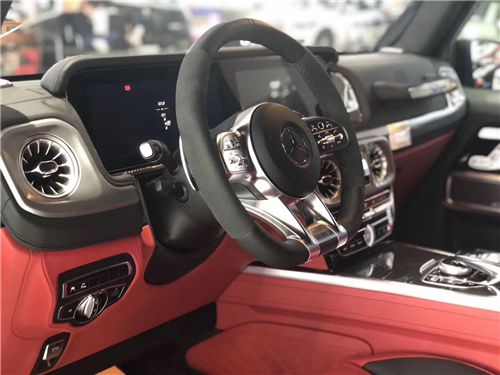 20款奔驰G63无论是轰鸣的排气声浪,还是枪栓般的车门上锁声音都会令人心旌摇荡。初次接触G63的车迷需要一段时间来适应它的坐姿和乎垂直的挡风玻璃,而一旦熟悉之后,你就会彻底沦陷于它宽大的座椅中。豪华精致的真皮包覆提供了足够的舒适性和支撑性,通风和加热功能让乘客免受高温和寒冷的煎熬。中控台多处均采用碳纤维材料覆盖,带彩色TFT显示屏的仪表盘、主菜单和单独的挡位显示器以及采用白色照明的门槛。名贵的选材及精湛的内装令人拍案叫绝。