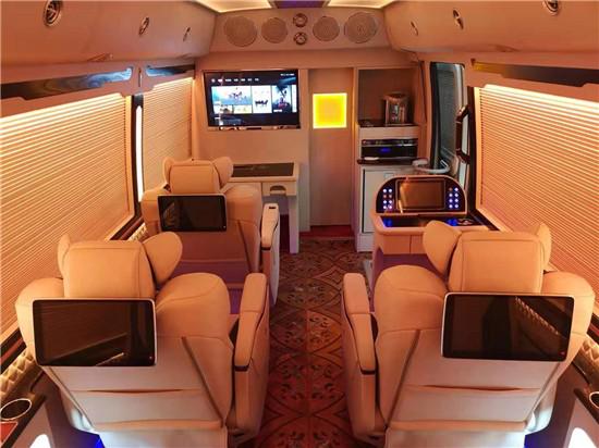 丰田考斯特10座改装商务车在内饰改装上的最大特点就是丰田考斯特10座改装商务车可以增加隔断增加发动机隔音盖,保持车内的安静氛围。丰田考斯特10座改装商务车内饰隔断,使得驾驶席与乘客车厢完全保持在两个空间里,这样乘客自然也就看不到驾驶位置上的司机了,但是并不是说两个空间之间毫无交流,隔断中间有推拉门连接,不会完全打断我们和司机的交流。