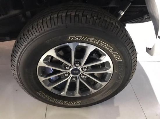 福特F150 3.5T的轮毂最为独特,新车最新的轮毂是把可靠的传统轮毂和防脱圈的轮毂结合起来了。这款防脱圈轮毂可以保证在轮胎气压较低的情况下,轮胎不会脱离轮毂,因为我们去沙漠的时候往往要降低胎压。并且它从传统轮毂转换到防托圈只需要客户拔去标准螺栓,从其常规位置卸下轮胎然后从可锁位置重新安装轮胎,再装防脱圈螺栓即可。