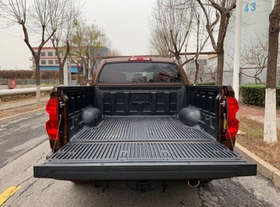 丰田坦途配置参数:长*宽*高:5815*2030*1930mm,轴距:3700mm,货箱尺寸:1695mm,整车质量:2555KG ,最大载重:560KG,最大拖挂:4173KG,最大马力:386PS,最大功率:284KW/5600RPM,最大扭矩:401NM/3600RPM,6挡手自一体变速箱,油箱容积:111L,气缸排列形式:V,综合油耗:15/100KM,驱动方式:前置后驱,四驱形式:分时四驱,车身结构:非承载式。