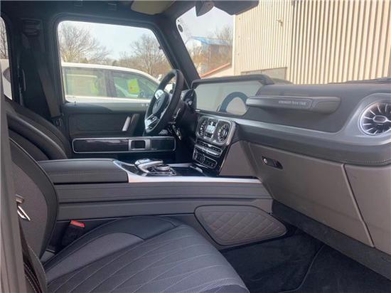 2020款奔驰G63 (配置|询价)内饰方面,新G63保留了新G500的整体设计,除配色差异外,新车还换装了全新造型的平底式AMG运动方向盘,其两侧配以打孔皮质包裹,下部镀铬装饰的造型也与新G 500明显不同,看上去十分战斗。此外,全液晶仪表盘+中控大屏的双12.3英寸屏幕设计在新车上也没有缺席,营造出了浓郁的科技感