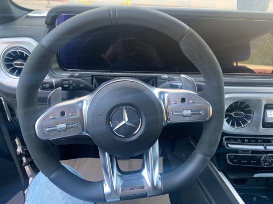 2019款全新G63内饰方面,新G63保留了新G500的整体设计,除配色差异外,新车还换装了全新造型的平底式AMG运动方向盘,其两侧配以打孔皮质包裹,下部镀铬装饰的造型也与新G 500明显不同,看上去十分战斗。此外,全液晶仪表盘+中控大屏的双12.3英寸屏幕设计在新车上也没有缺席,营造出了浓郁的科技感。