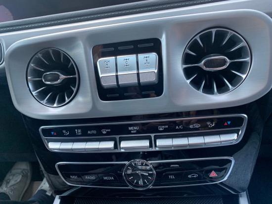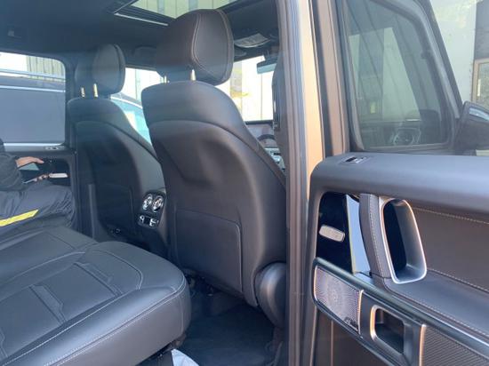 新车换上了奔驰最新家族式的内饰设计,这无疑让G级拥有了旗舰级应有的豪华感,不过经典的副驾驶席扶手和三把锁的开关键依旧延续了经典设计,并设置在中控台最显眼的位置。其中双12.3英寸高清屏,虚拟仪表盘与中控液晶屏融为一体,视觉上形成一个宽屏驾驶舱,中部的涡扇式空调出风口也颇具设计感,还大量采用了皮革的包覆。另外,新一代G级还对驾乘空间也进行了优化。(在夜晚氛围灯通电会非常漂亮)