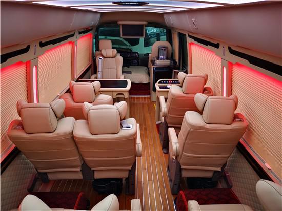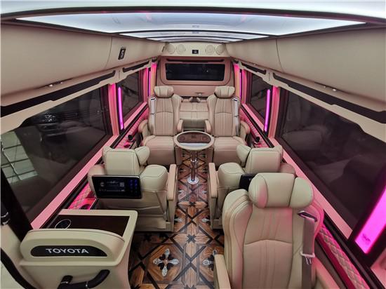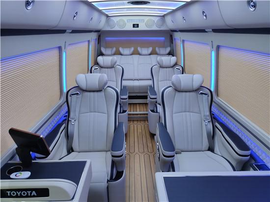丰田考斯特改装商务车在内饰的设计上增加了许多与众不同的舒适的设计,尊贵的埃尔法 (配置|询价)原装座椅,舒适和高贵同在,丰田考斯特改装商务车在内饰的设计上还可以选择其他的座椅,真皮座椅有米色和棕色两种不同的选择。可旋转的航空首长席座椅方便了我们在商务活动中可能会议的需要,也方便了我们和通行人员的交流。