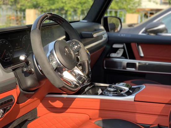 20款G63内饰肯定是这代全新奔驰G级最令人眼前一亮的地方,它可以说是一改上代沿用了十年的内饰风格,在整体视觉上档次感与豪华度上有了质的飞跃,精选皮革搭配碳纤维中控材质装饰风格彰显了顶级经典越野车的风采。2019款奔驰G63AMG进口SUV豪车内饰设计更具时代感也更加豪华,新车还换装了全新造型的平底式AMG运动方向盘,下部镀铬装饰的造型也与新G 500明显不同,看上去十分战斗。订车微信:15822943558 林经理