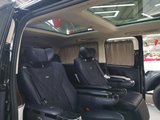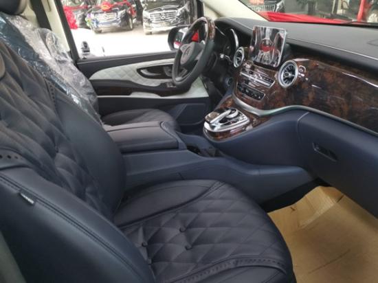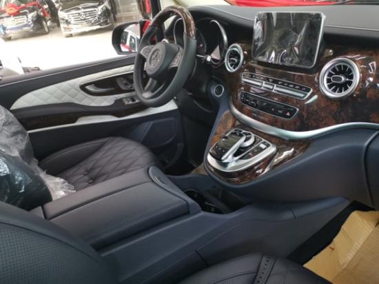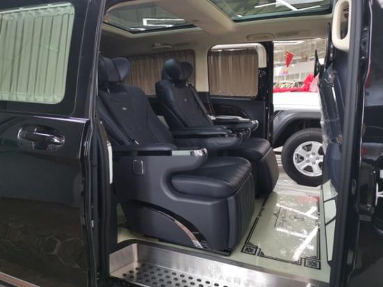 奔驰V (配置|询价)260改装放纵的自由,满足商务接待、洽谈、出游等的需求使用,从配置上来说,奔驰V260改装后座三连排电动沙发座椅,向后拓展可一键平躺变身奢华大床,商务出行可作为休憩佳所,合家出游首选。更多优惠请咨询文章底部电话,电话同微信黑色网状的进气格栅显动力和无限实力,奔驰V260外观中间闪耀的三叉戟依旧在表明高贵身份,