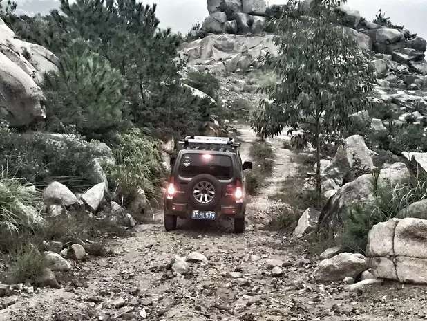 第天上山试车是骡子是马就要溜溜了,摆拍一张。主要的项目有高速碎石路,炮弹坑,路交叉轴。难度是很高。主要也是为了熟悉车的性能,毕竟在磨合期不敢乱来。