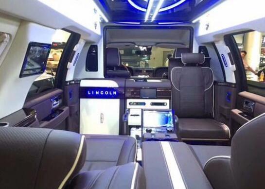 凯迪拉克总统一号内部配备了真皮桃木内饰,高级地毯,高级豪华的异域吧台,凯迪拉克总统一号整车可多种变换的7彩LED灯饰带来梦一般的境界。凯迪拉克总统一号对豪华SUV而言,消费者一方面要求凯迪拉克总统一号它须拥有符合身份的强大动力储备应对各种复杂路况的挑战,凯迪拉克总统一号定会为您的旅程打造出梦幻般的视觉盛宴。整个后舱为四座规划,两个主座为至尊奢华真皮头等舱座椅款式,且带腿部支撑和电动按摩加热功用,四座椅头枕处均印有凯迪拉克标识。主座椅中央扶手处还设有控制台,让您置身舒适的座椅不必动身就可操控车内设备,相当人性化。