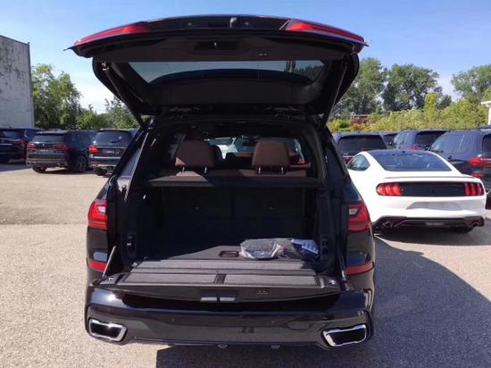 宝马X7的尾部后备箱采用上下对开的开门方式,贯穿式的尾灯配合一整根镀铬装饰条,符合当下的潮流,车尾部的线条设计也非常丰富,排气采用了双边单出的设计,处处都彰显着大气两个字。
