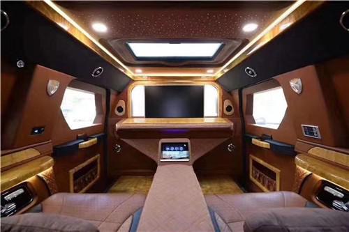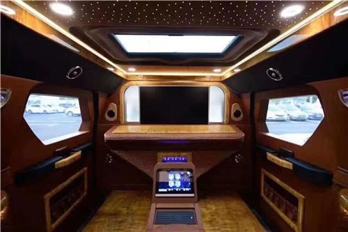 乔治巴顿内部配置:前排座椅8项电动座椅,中排8项加热通风按摩电控座椅,后厢独立空调,10°后舱LCD娱乐屏。阿尔派音响,前排车载导航蓝牙系统。USB顶棚触摸式阅读灯+氛围灯条。铝合金内饰,复古高光原木风格,钢琴烤漆地板。