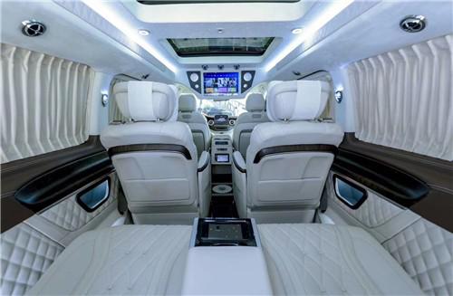 首先奔驰V (配置|询价)全系改装VS680车头的样式得到了很大的改变,迈巴赫S级 (配置|询价)同款的进气格栅。中央依旧有标志性的雷达传感器,表明V级迈巴赫配备了自适应巡航功能,新车的外部线条相当端庄大气,配合得体的太妃奶糖双色车身、“锅盖”轮圈以及多处“不惜工本”的镀铬元素饰条,营造出众的整车气场。而全新设计的头尾灯组,点到即止,避免喧宾夺主。
