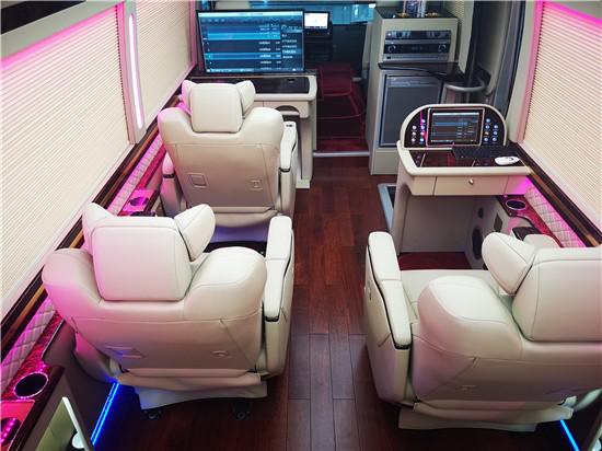 丰田考斯特改装商务车的设计的设计不仅仅只是体现您的高贵身份,更是为了给给您的商务旅途带来方便,因此在设计上我们更考虑了您在办公中的所有需求。在车顶处添加LED灯,方便您在旅途中观看书籍或者工作材料。高档办公桌双人汇报新,并且配备了方便的电脑以及手机充电接口,方便而又安全。丰田考斯特改装商务车在内饰的设计上充分考虑了作为商务车的实用性和尊贵舒适的考虑,贴心的设计带给我们舒适的与众不同的体验。