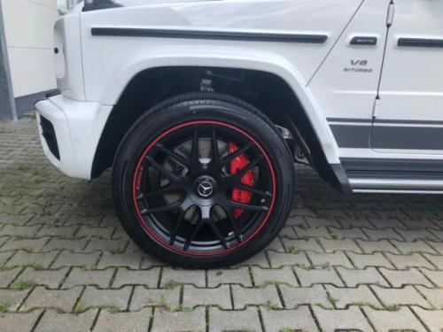 此外,新AMG G63最大的轮圈尺寸提供22英寸可选,进一步提升了它外观造型的彪悍程度。展车不仅采用了全新的车身涂装,还搭配了红色的轮圈装饰,更加个性。