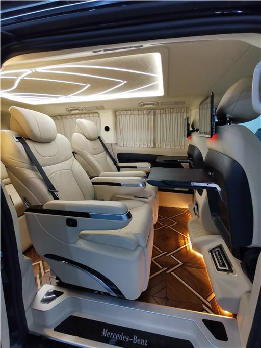 奔驰威霆改装商务车 商务接待内饰太奢华了,首先,在座椅部分,宽大厚软的真皮座椅,具备多向调节与按摩等功能更佳;毕竟MPV不是小巴士,不必追求座位数量;MPV改装应追求乘坐体验,为达到此目的,换上一套大沙发也未尝不可。得益于MPV巨大的内部空间,改装内饰时自由度更高;玩家们可以毫无压力地在MPV的车厢里打造一个豪华包厢,让乘客在行驶过程中获得豪华体验。