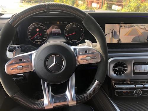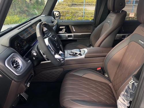 2019款全新G63内饰方面,新G63保留了新G500的整体设计,除配色差异外,新车还换装了全新造型的平底式AMG运动方向盘,其两侧配以打孔皮质包裹,下部镀铬装饰的造型也与新G 500明显不同,看上去十分战斗。此外,全液晶仪表盘+中控大屏的双12.3英寸屏幕设计在新车上也没有缺席,营造出了浓郁的科技感。新G63保留了新G500的整体设计,除配色差异外,新车还换装了全新造型的平底式AMG运动方向盘,其两侧配以打孔皮质包裹,下部镀铬装饰的造型也与新G 500明显不同,看上去十分战斗。此外,全液晶仪表盘+中控大屏的双12.3英寸屏幕设计在新车上也没有缺席,营造出了浓郁的科技感。