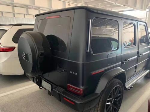 款奔驰G63配置: 标配:黑色普漆,19寸铝合金高光泽轮毂,9挡手自一体,胎压监测,ABS防抱死,车身稳定系统,刹车辅助,牵引力控制,并道辅助,车道偏离预警系统,主动刹车、主动安全系统,疲劳驾驶提醒,前后驻车雷达,倒车影像,定速巡航,自适应巡航,发动机启停,上坡辅助,自动驻车,陡坡缓降,电动天窗,铝合金轮毂,车内中控锁,遥控钥匙,一键启动,真皮方向盘,方向盘电动调节,方向盘加热,方向盘换挡拨片,方向盘记忆,12.3寸液晶仪表盘,腰部肩部支撑调节,主副电动座椅,前后排座椅加热,前排座椅通风,手机互联、映射,柏林之声音响,LED近光灯、LED远光灯、LED日间行车灯、自适应远近光灯,大灯高度可调、大灯清洗,车窗防夹功能,防紫外线隔热玻璃,后视镜加热,后视镜电动调节、自动折叠,