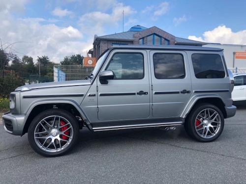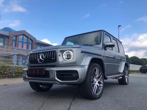 19款墨版Edition 1 先行特别版G63 颜色:灰/红黑双拼(3149) 配置:配置:9速AMG变速箱,黑色AMG独家黑红双拼内饰 可调阻尼底盘 主动车道保持 主动刹车辅助 AMG红色卡钳 雷达测距 柏林之声3D音响 电动天窗 风挡玻璃加热 超细纤维内饰(鹿皮顶) 64色氛围灯 360环影 停车辅 几何多光束LED大灯 AMG暗夜包 增强座椅舒适包(多轮廓座椅,通风按摩),AMG高性能Nappa真皮方向盘 AMG驾包
