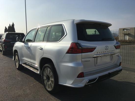 19款中东版雷克萨斯LX570限量版S(大包围) 报价136-160万 配置:雷达测距、抬头显示、换挡拨片、铝制行李架、限量包(前后大包围、黑色大中网、钢制油门/刹车脚踏板、车门迎宾灯)、S限量花纹脚垫、后包围镀铬、镀铬尾喉、外置拖车钩、138升双油箱、遥控启动、车身防擦条、副驾驶灭火器、流水转向灯、金属漆、Logo地射灯、21轮、冰箱、天窗、智能卡、电眼、环影、后娱、底盘升降、前座椅通风加热(真皮)、导航、多功能桃木真皮方向盘、桃木内饰、航空照明脚踏、LED 氙灯、大灯清洗、迎宾灯、四区空调、三排电动、电尾门、ACC自适应巡航、后座椅通风、车道保持、并道辅助、排遮阳帘、马克莱文森音响、后盖带LED灯…