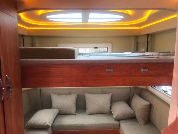 奔驰乌尼莫克超级越野房车车身尺寸为5965*2510*3660mm,轴距为3850mm,前后轮距都是1927mm,轮胎使用的是米其林365/80R20越野轮胎,具备中央充放气系统。整备质量为7580/7140kg,最大质量为9500kg。全车额定载客人数为2-6人。因为车长不超过6米,c本就能驾驶。一辆乌尼莫克越野房车吸引了最多的关注。毕竟,是个男人,都喜欢车,尤其是喜欢外形刚硬而且性能卓越的越野车。如果这辆越野车又是辆房车的话,那更爱之入骨。