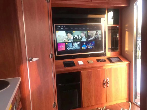 装备尖端家庭影院体系,由32寸高清LED,高清DVD播放机,高档BOSE音响体系和动中通卫星电视接收体系所组成。微波炉和冰箱也必不可少。具有网络连接和WIFI功用的全球海事卫星通讯体系,确保户外通讯顺利。