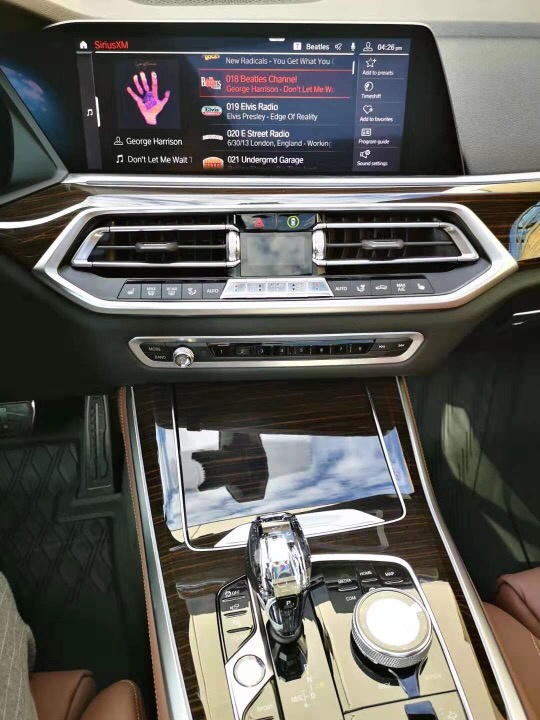 宝马X5在内饰方面为消费者带来了更多的惊喜和变化,中间的液晶屏向驾驶者稍稍倾斜,中控屏和仪表盘相连,系统采用宝马最新一代iDrive系统,看起来更加具有科技感,中间的空调节采用了独立屏幕显示,搭载全新造型的电子档杆,包括IDrive旋钮,两个都采用了非常棒的透光玻璃打造,再加上头顶非常漂亮的星空顶,也营造出了以往BMW车型少有的豪华感。