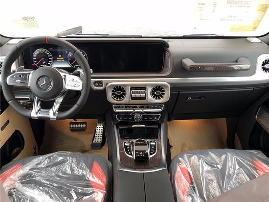 全新G63内饰方面,新G63保留了新G500的整体设计,除配色差异外,新车还换装了全新造型的平底式AMG运动方向盘,其两侧配以打孔皮质包裹,下部镀铬装饰的造型也与新G 500明显不同,看上去十分战斗。此外,全液晶仪表盘+中控大屏的双12.3英寸屏幕设计在新车上也没有缺席,营造出了浓郁的科技感,2019款奔驰G500价格G63报价G63先型特别版多少钱。